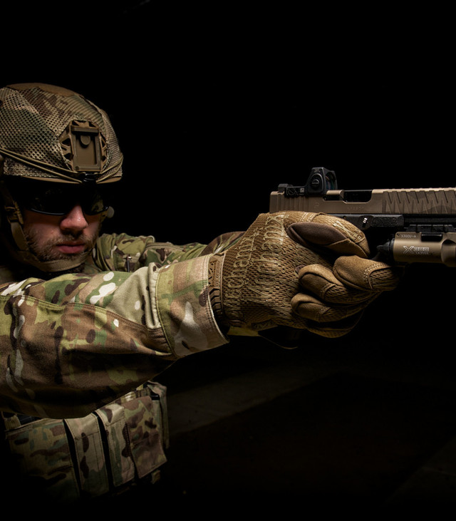 - Безшовна область долоні забезпечує максимально ефективний контакт із зброєю або інструментами