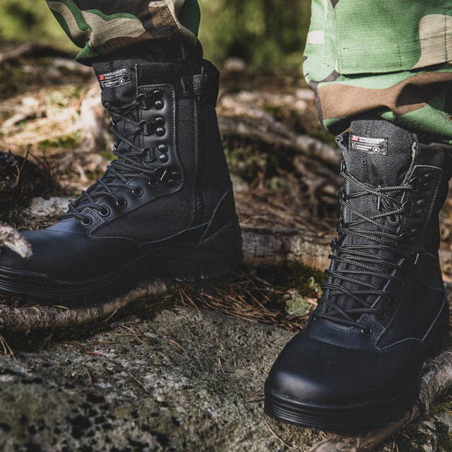 Тактичні черевики з бічною блискавкою YKK® та передньою системою швидкої шнурівки у вигляді 4D-подібних кілець та 5 люверсів з нержавіючої сталі. Вони ідеально підходять для любителів спортивної стрільби та військових дій. Виготовлені з водонепроникного та стійкого до механічних пошкоджень нейлону 1200D та волової шкіри, що підвищує комфорт використання. Вони оснащені спеціальною устілкою, що ізолює від вологи, завдяки чому ноги залишаються в теплі та сухості. Посилений високий верх захищає ногу, зводячи до мінімуму можливість вивиху, а унікальний протектор підошви забезпечує оптимальне зчеплення з поверхньою. Внутрішня частина черевика, комір і язичок утеплені термоізоляційними мікроволокнами 3M Thinsulate™, що дозволяють зберігати тепло в холодну пору року і запобігають надмірному потовиділенню ніг у теплу. Ці тактичні черевики стануть надійним помічником для роботи оперативників силових структур, військових, працівників охоронних організацій, туристів та спортсменів стрілецьких видів спорту на полігоні.