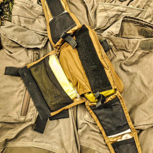 Час та безпека рятувальників - ось що має значення при наданні першої допомоги. Universal Med Insert® дозволяє розмістити базову аптечку в продуманому, оптимальному порядку - від рукавичок до марлі, бинтів, дезінфікуючого засобу та ножиць. Аптечка відкривається "книжкою" назовні в сторони, забезпечуючи миттєвий доступ до вмісту, розділеного на розсуд користувача. Сегменти вкладиша можна легко застебнути на Velcro і відкрити за допомогою правильно розташованих липучок. При відкритті рятувальник має доступ до всієї аптечки без необхідності додаткового відкриття або переміщення компонентів. Підсумок оснащений універсальною системою VIS® (Versatile Insert System®) для монтажу всередині іншого підсумка, сумки, рюкзака і т.д. Вкладиш червоного кольору, що разом зі світловідбиваючими елементами (хрест парамедика та ручка для перенесення) на кришці допомагає швидко знайти аптечку, що життєво важливо при слабкому освітленні та метушні рятувальної операції. Модульна індивідуальна аптечка - обов'язковий елемент спорядження як польових, так міських операцій.