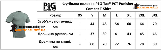 Базовий шар анатомічного крою для військовослужбовців та людей цінують комфорт та надійність. Футболка польова PCT Punisher Combat T-Shirt виготовлена з високоякісного натурального матеріалу CSSJF-30/1 95% бавовна, 5% спандекс, щільністю 190 г/кв.м. Матеріал забезпечує комфортне носіння як під елементами верхнього одягу так і окремо, як футболку в спекотний період року. Плоскі шви Флетлок гарантують надійність з'єднання елементів футболки PCT, запобігають натиранню шкіри та надають додаткову еластичність, що вкрай важливо для людей, які ведуть активний спосіб життя.