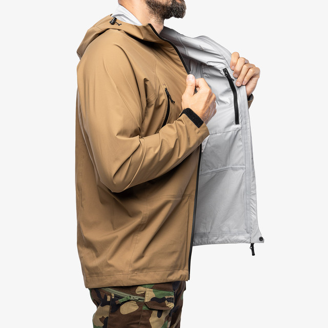 - Повна передня двостороння блискавка YKK® AquaGuard® із зливовим клапаном та захисту підборіддя від затискання