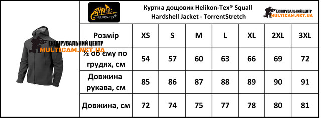 Революційна куртка дощовик Squall Hardshelll оснащена тришаровою мембраною TorrentStretch. Характеризується дуже добрими параметрами водонепроникності на рівні 30 000 мм водного стовпа. Повітропроникність становить 30 000 г/м2, відмінний коефіцієнт опору випаровування RET <5. Мембрана, що складається з трьох ламінованих шарів, запобігає попаданню води, але в той же час забезпечує достатню циркуляцію повітря. Пахвова вентиляційна система дозволяє регулювати температуру тіла. Куртка покрита гідрофобним покриттям DWR (Durable Water Repellent), що не містить шкідливих ПФУ. Проклеєні шви та брендові водонепроникні блискавки YKK® AquaGuard® забезпечують додатковий захист від вологи. Манжети та пояс на велкро дозволяють індивідуально підігнати куртку по фігурі. Регульований каптур з високим коміром захищає від опадів та вітру. Основна блискавка двостороння, фіксується кнопкою Prym. У складеному вигляді куртка міститься в капюшон. Squall оснащений трьома кишенями на блискавці - двома зовнішніми та однією внутрішньою, призначеною для документів або телефону. Усередині також є прохід для кабелю навушників. Панель-липучка на лівому плечі дозволяє кріпити нашивки, емблеми або мораль-патчі. Температурний діапазон застосування дуже широкий. Куртка може використовуватися в теплу пору року, як дощовик або і в екстремально мінусових температурах, спільно з шарами, що утеплюють, одягненими під низ, забезпечуючи захист від снігу, дощу і додатково зберігає тепло користувача.