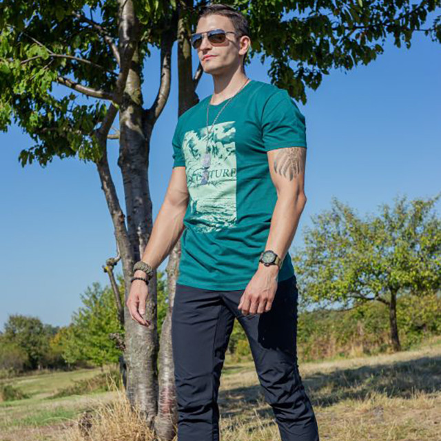 Базовий прошарок одягу. Традиційна футболка з коротким рукавом та круглим вирізом. Міцна, дихаюча високоякісна трикотажна бавовняна тканина щільністю 165 г/м2 робить футболку легкою та дихаючою. Вільний крій не обмежує свободу рухів. М'яка манжета навколо шиї захищає від потертостей та розтягування матеріалу. Якісний та стильний принт, чудово поєднується з іншими елементами гардеробу. Принт на лицьовій стороні за мотивами активного відпочинку в кемпінгу на відкритому повітрі та плакату з офісу Фокса Малдера в культовому серіалі "Секретні матеріали" - The truth is out here.