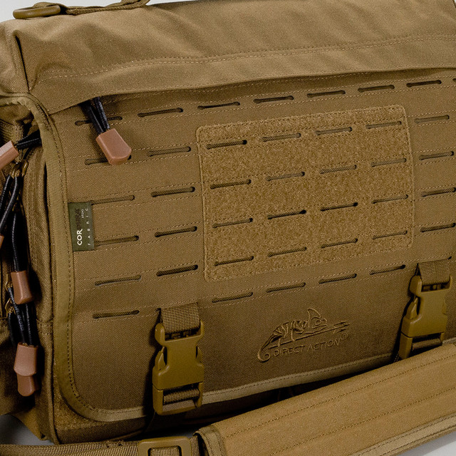 Messenger Bag® - це універсальна і легка наплічна тактична сумка, призначена для військових і оперативників правоохоронних органів. Ця сумка має широкий вибір забарвлень - камуфляж і однотонні, що робить її відмінною тактичної сумкою для стрільців, мисливців та любителів активного відпочинку. Ви також можете отримати її у сніговому камуфляжі - PenCott SnowDrift ™ для зимових видів спорту. Messenger Bag® також може використовуватися в якості сумки для повсякденного носіння (EDC). Якщо ви шукаєте надпотужну сумку MOLLE для iPad, планшетного пк, пристрої для читання електронних книг або просто міцне додаток для вашої сумки bug out bag (BoB) - Messenger Bag®, створений компанією Direct Action®, є найкращим вибором для Вас. Оснащена набором ємних кишень, Messenger Bag® дозволяє користувачеві легко налаштувати і персоналізувати сумку для своїх потреб. Основне відділення оснащене липучкою, що дозволяє додавати додаткове обладнання, наприклад, кобури та під-сумки для магазинів. Спеціальний кишеню всередині основного відсіку захищає планшет або інші електронні пристрої. Сумка має лазерну модульну систему, сумісну з MOLLE/PALS. Повністю регульований плечовий ремінь поставляється з нековзною подушкою. Лазерне різання не вбирає воду, як звичайна тканина MOLLE/PALS. Виготовлена з міцної 500 мм нейлонової тканини Cordura® з водостійким покриттям.